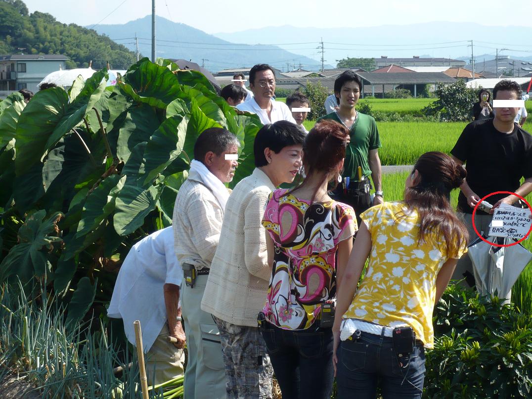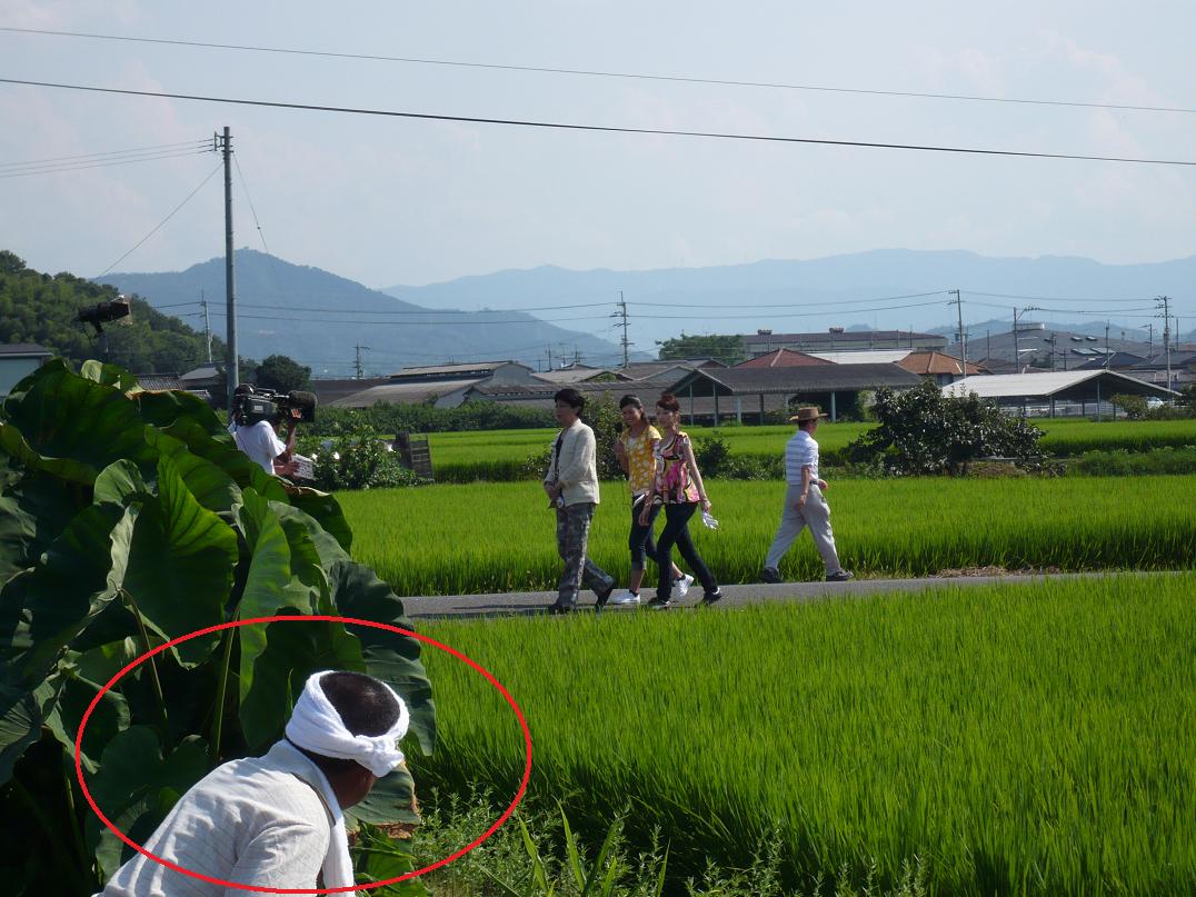 M川憲一が、里芋の左側で作業をしているじーちゃんを発見
