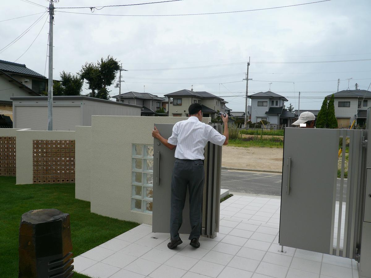 と思いツツ忘れてたことがあったんですー って、言うのは。。。もしかしたら きこりん ゲッチできるかもー情報です ![]() ![]() 住林ユーザーさんにしか、応募権利がナィんですけどね。。。 住林HPから、オーナーサイトclubforestにアクセスして㊦さいませ ![]() ![]() ![]() 『住友林業の家』のオーナー様20万組達成記念 クラブフォレスト入会キャンペーン実施中 ![]() ってのがあります。 運があれば、展示場にあるあの『きこりん』が20名に当たるそぉですょ ![]() 散々、悪口書いてる私も図々しく応募しておきましたょ ![]() 『たら』『れば』の話なんだけど、当たったらor当たれば嬉しいな ![]() 多分、当たらナィと思うけど。。。ストラップはィパァィあるので、いらない ![]() きこりんクレーーーー 住林ユーザーさん 皆さんも、クラブフォレスに登録して応募しましょ![]() ポチっと応援プリーズ ![]() 8月1日(水曜日)引越しから57日・完成から25日です。 門を内側から見た所です~ 何だか素敵やーん って、自己満足の世界に浸ってた所、目に飛び込んできたイヤーな奴。。。目をこらして穴があくほど隅々まで見て㊦さぃ ![]() ![]() ![]() 犯人ロックオンです ![]() 門の左㊤に微妙な凹みキズが出来てるんです 何だぁーーーって凄くイヤーな気分です ![]() 原因は、コイツっすー この、ビスが縦格子の一番外の部分に当たってキズをもれなく付けてくれてるんです ![]() 気に入らんなー ってな訳で悪代官社長に速攻連絡しました ![]() ![]() いらっしゃいましー YKKの営業を伴って悪代官社長が確認に来ましたょーー ここで、悪代官社長のキツーな洗礼がYKK営業にブットンデましたーー 悪::こんなんはィカンなーー Y::本当ですよねー 悪::衣装バッカリ気にして作って。。。 Y::苦笑い。。。。。。。。。。。。。 悪::だって、そやろー 何ぼ(いくら)衣装バッカ凝っても実用性がナィんは ィカンやろーーー Y::そぉですよね ![]() ![]() 悪::門ってのは、開く物やけんなー そこで、ビスに当たるって考えて作らな ィカンやろーーーーー Y::これは、チョットヒドイんで写真撮って帰ります~ 衣装に問題があることを報告して作り直しですねーー 悪::こんなんでは、ぉ客が喜ばんからなー チャントしてやーー ってな具合でした~ 今回も、にこやかな顔をしてフツーにボディーブローを埋め込んでましたね。。。 今回の、門扉ですが少し前に新製品で発売されたバッカリなんですね~ 悪代官社長の進めで衣装が綺麗なんで って、ことで採用したんです![]() 門扉と門柱のフルセットを実際ぉ家で採用された方がナィらしく。。。何で見るの って言えばカタログの写真ノミな状態なんですね~なので、実際使ってみて のダメやんー って言葉が今迄無かったそぉです。それも、困ったもんですよね。。。 新製品の宿命と言えばそぉなんですけど、何か何か。。。って感じです ![]() ![]() どんな対応になるのか 後日連絡があるそぉなので少し待つことにしましょーかね![]() この日の夜です。 セコムさんが新製品(マタマタ新製品でっせーー)の赤外線カメラを持ってきました~ 以前、我が家が出来る前に外にカメラを って旦那さんの強い要望があったんですねーでも、その頃セコムにある赤外線カメラってのが 『絶対にありえん 』『ダサー』なデザインだったので申し訳ナィけど、ぉ断りしてたんですね~ それが、今回新製品で少しデザイン的にもイイ感じのが出たので。。。ってことでぉ披露目&どぉでっしゃろ って営業に来ましたょ![]() デザイン的には、壁の色にもマッチしててイイかもーでした。けどねけどね。。。 これは、カメラに写しだされる画像ですょ~ 画像的には、ソコソコな許容範囲でシッカリ映っててイイ感じなんです ぉ嬢が手を振ってる姿もクッキリ出てるんです![]() ![]() が、私的にぉ家が完成した後の取り付けは配線を隠すことが出来ないのでイヤーなんですよね。。。 旦那さん的には気に入った感じなんでィチォ金額&取り付け方などをよぉぉぉく聞いてから考えることにしましたょ~ サテサテ、どぉなるのか。。。 拡大プリーズ ![]() ここは、①レンジャーの部屋の北側にある窓の外側です。 赤丸部分をよぉぉく目を凝らして見て㊦さい ![]() スズメ が、窓の㊤の枠に②匹も泊まってるんです。。。止まってるやなく、泊まってる んですって![]() タダ、止まるダケならイイんですけどね~これが飛び立つ時に『ヌヌヌ 』な物を残して行ってくれるんですーそれは。。。 糞 糞なんですって なので、この窓には密かに糞がダラーって流れてるんですよね![]() ![]() 住林の窓は壁に半埋め込み型なので、どぉしても枠が飛び出してて。。。鳥にとっては格好の止まり木のよぉです ![]() ![]() 今後において、この枠ってどぉにかならぬか『住友林業』さんよーーって感じですね~ |