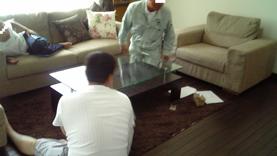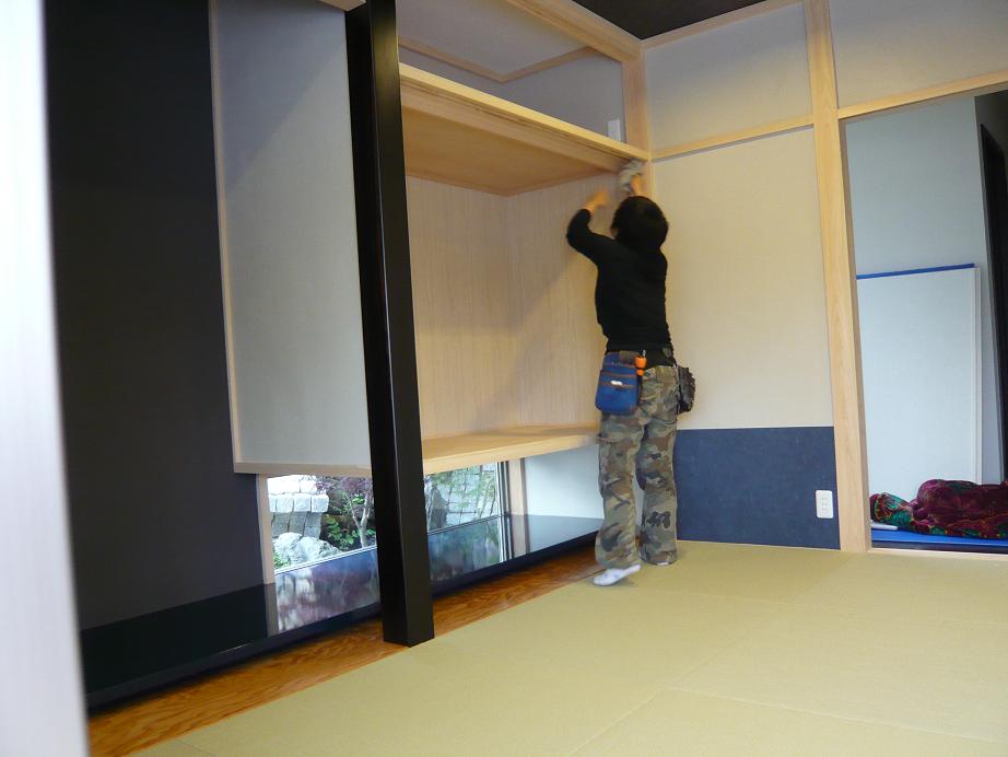(と言っても、ガラスを㊤に乗せて固定するだけなんですけどね。。。)も完了したので、Oさんと和室に移動です