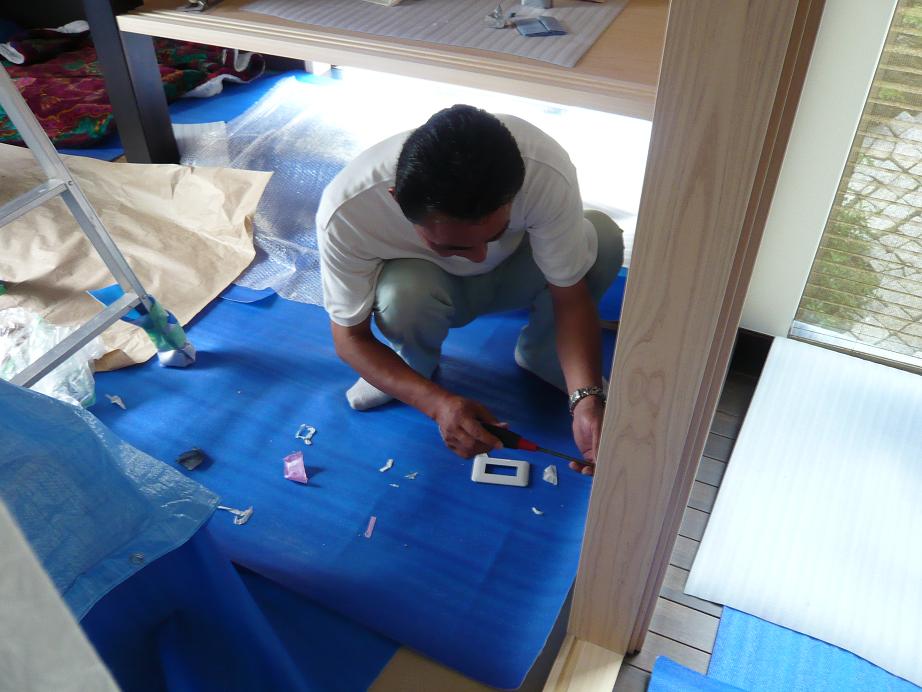 一生懸命、コンセントの取り付けをしてくれてたので激写です。