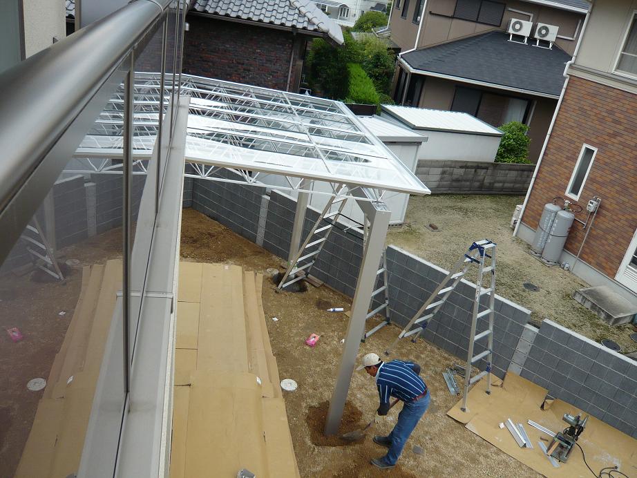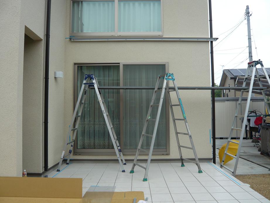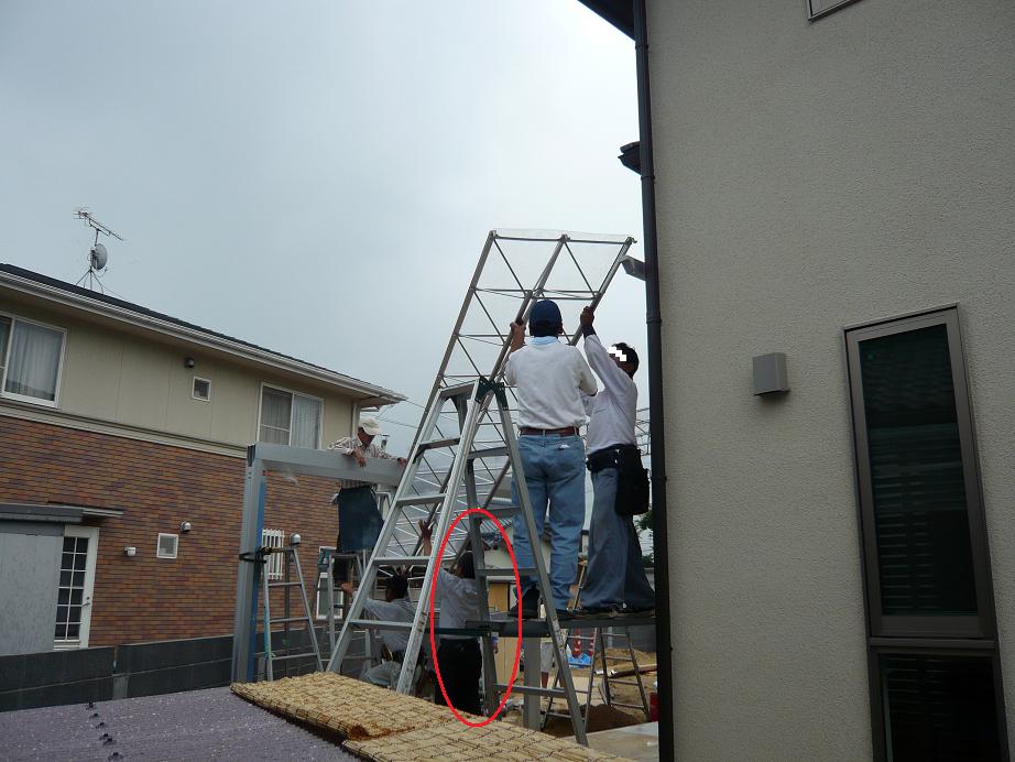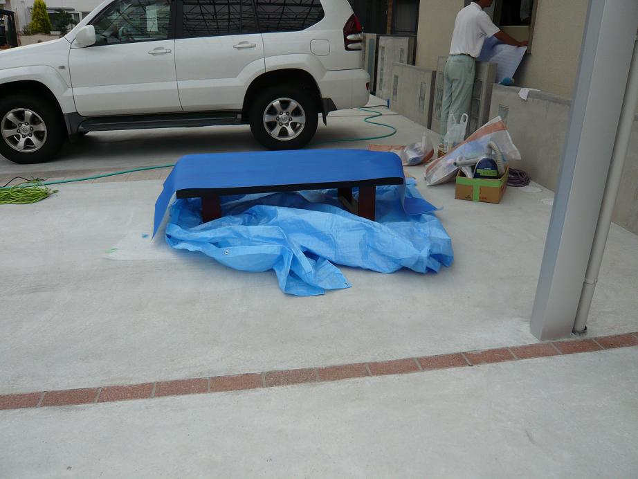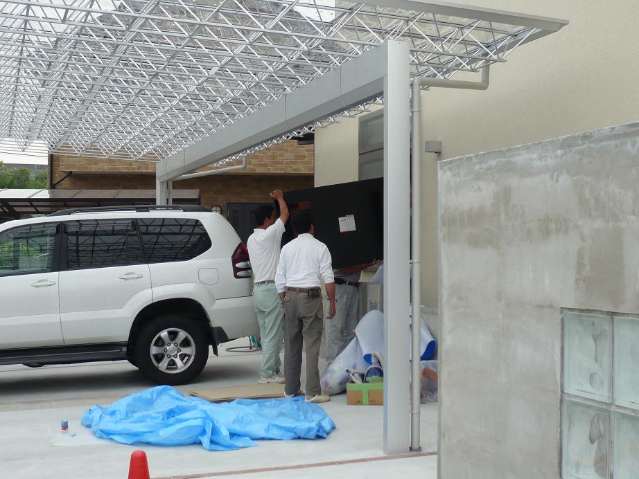引渡し後なので、外での作業になりました。この日は最悪ーなことに雨です