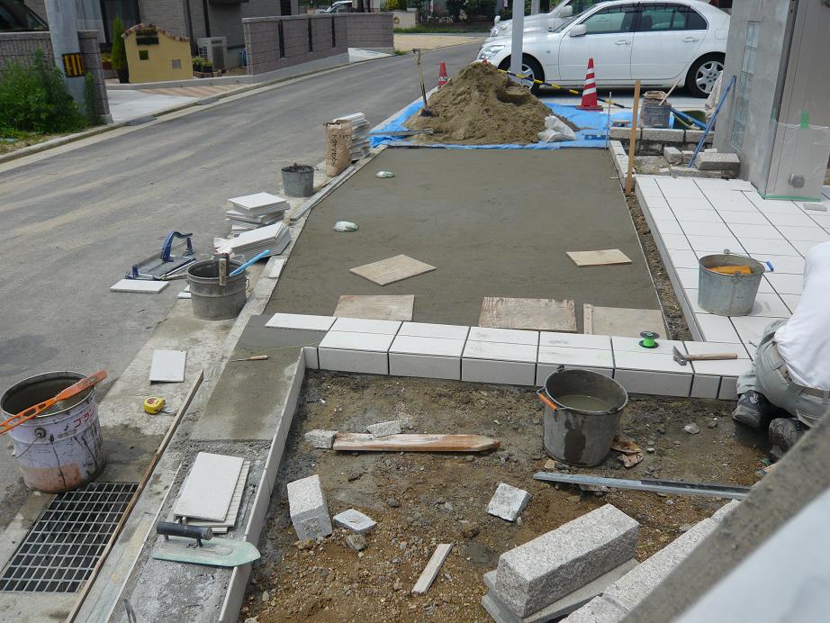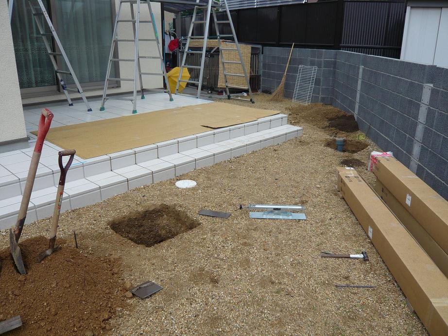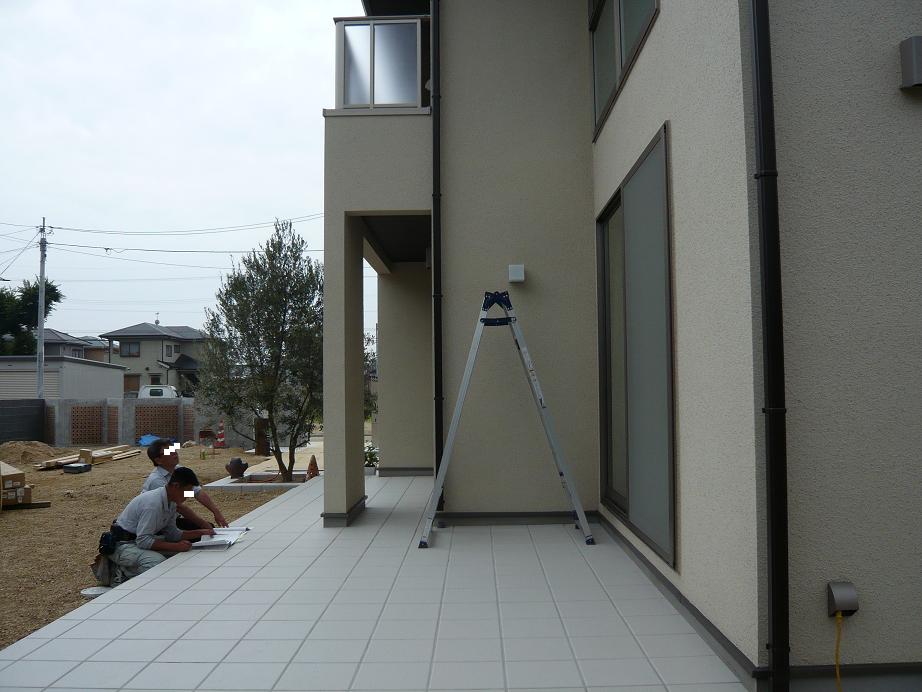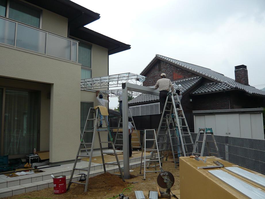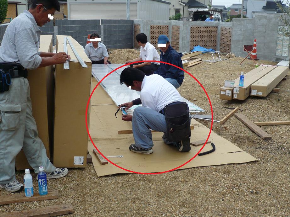 引渡し後なので、外での作業になりました。この日は最悪ーなことに雨です
